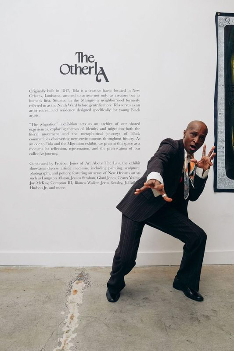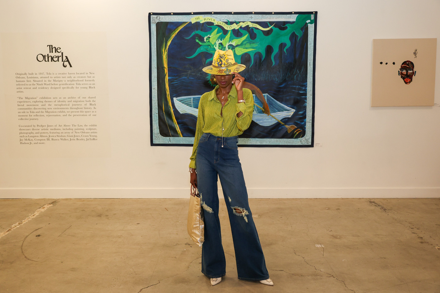 The exhibition featured two complementary sections: “The Movement,” highlighting contemporary Black artistic expression across various disciplines, and “The Migration,” creating a symbolic bridge between New Orleans and Los Angeles artists in homage to Tola—The Other LA. Through immersive installations, panel discussions featuring luminaries like Lisane Basquiat and Patrisse Cullors, and dynamic performances, the exhibition explored profound themes of identity, heritage, and belonging.